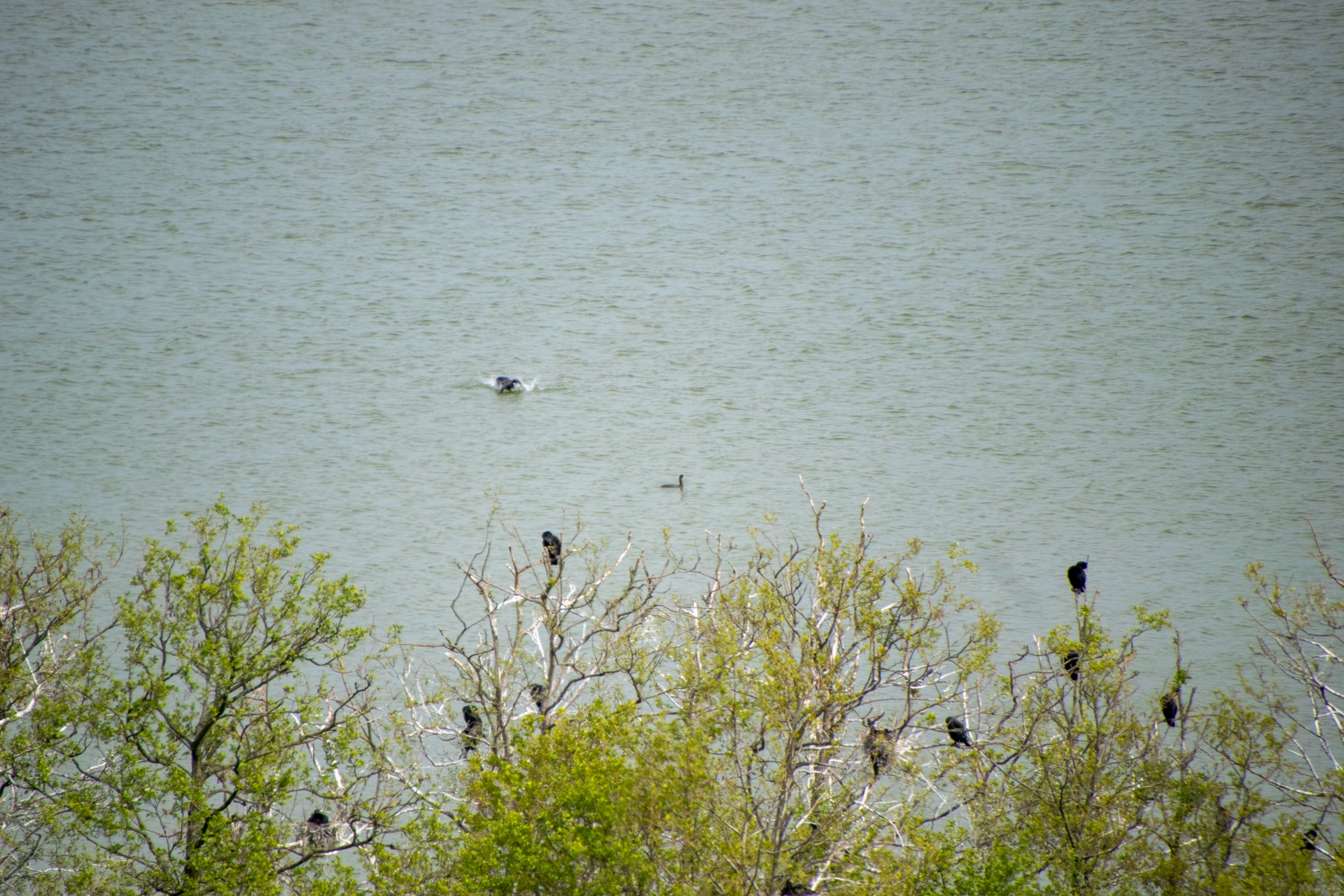 There is a colony of Cormorants in this place. Here they nest in the trees. I don't really understand how these large waterfowl birds can build nests in trees. But it's a fact.
