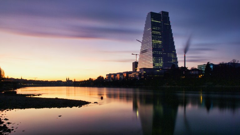 The image above was planned using the ViewFinder app. At that time I was working at Roche in Basel (Switzerland). After I had finished work at Roche, I went to the other side of the Rhine to plan a suitable place for a camera rotation with the two Roche towers as a motif. The Viewfinder app helped me with this. In the evening I returned to my favorite spot on the banks of the Rhine with all my equipment, positioned the tripod and the rotation tool and started a series of shots. Above you can see the scene at dusk. The title picture shows a rotation of 180°. I wrote about it here on the blog last year. You can find the post here: