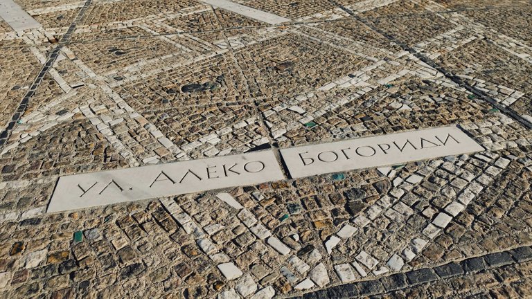 On one part of Aleko Bogoridi street leading to the sea, there is a dedicated space where a map of old Burgas is depicted as a mosaic and granite slabs.