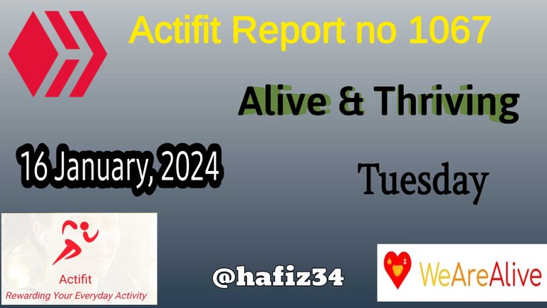 Hello, again. Assalamu Alaikum! How are you? I hope that you are doing great. Welcome to my post. It is actifit report number 1067. It's also the Alive and Thriving report on Tuesday.