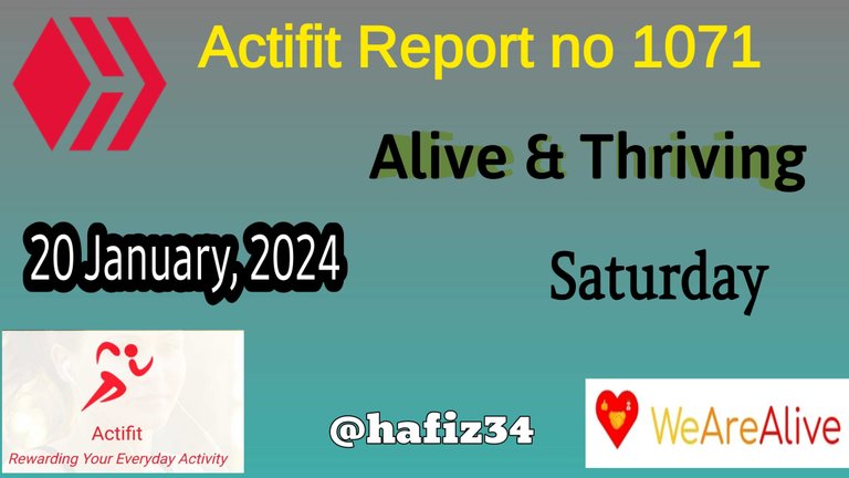 Assalamu Alaikum! How are you? I hope that you are doing great. Welcome to my actifit report number 1071. It's also the Alive and Thriving report on Saturday.