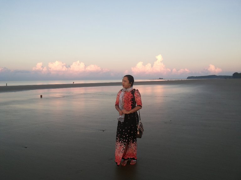 Since the sand on the ground is a little wet, the color of the sky is reflected on the sand.