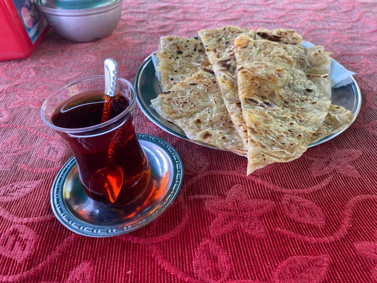 Before talking about the time we spent together in the village, I want to mention the gözleme we ate on our way back from Antalya. Potato gözleme is my favorite, but this one tasted different. I don't know, maybe it tasted so good because I was very hungry at the time and because I was relieved to have escaped the heat of Antalya.
