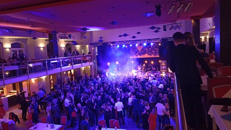 Hřiště přes den. Večerní návštěva plesu.