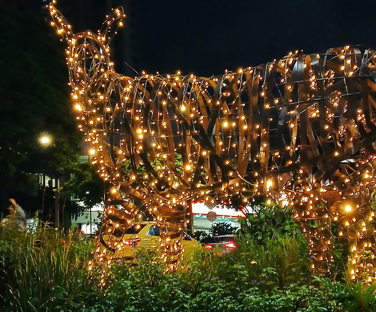 Formas y figuras de animales iluminan las afueras de algunos centros comerciales