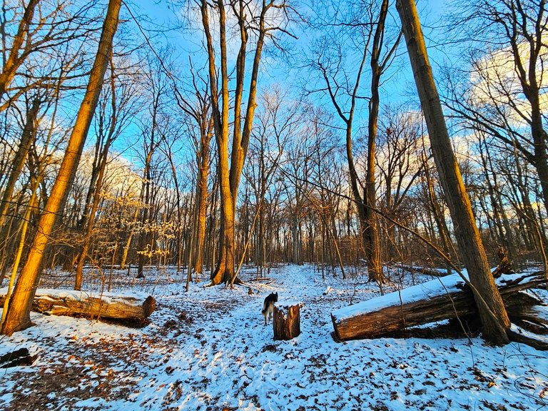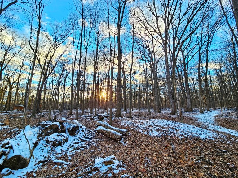 The little snow we got while driving back and overnight wasn't enough to cover the whole ground, but it was nice to see the small forest with a few white patches.