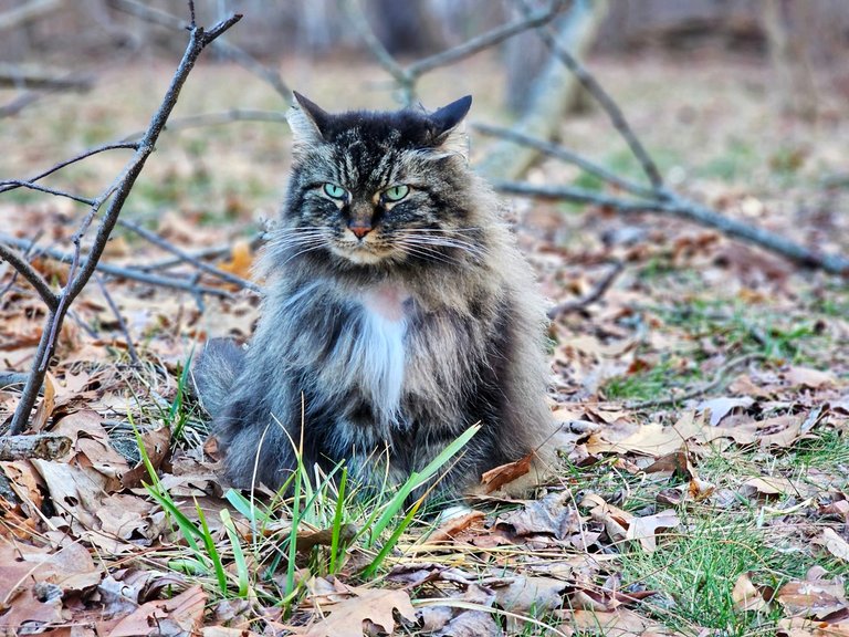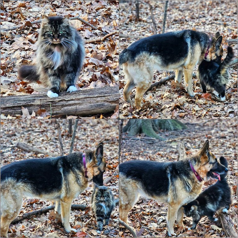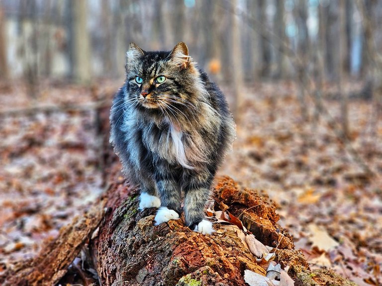 During one of our loops in there, we suddenly saw Le Chat appearing in the middle of the forest. She doesn't venture that far in often, so it was nice to see her there. For sure Kaia was glad to find her.