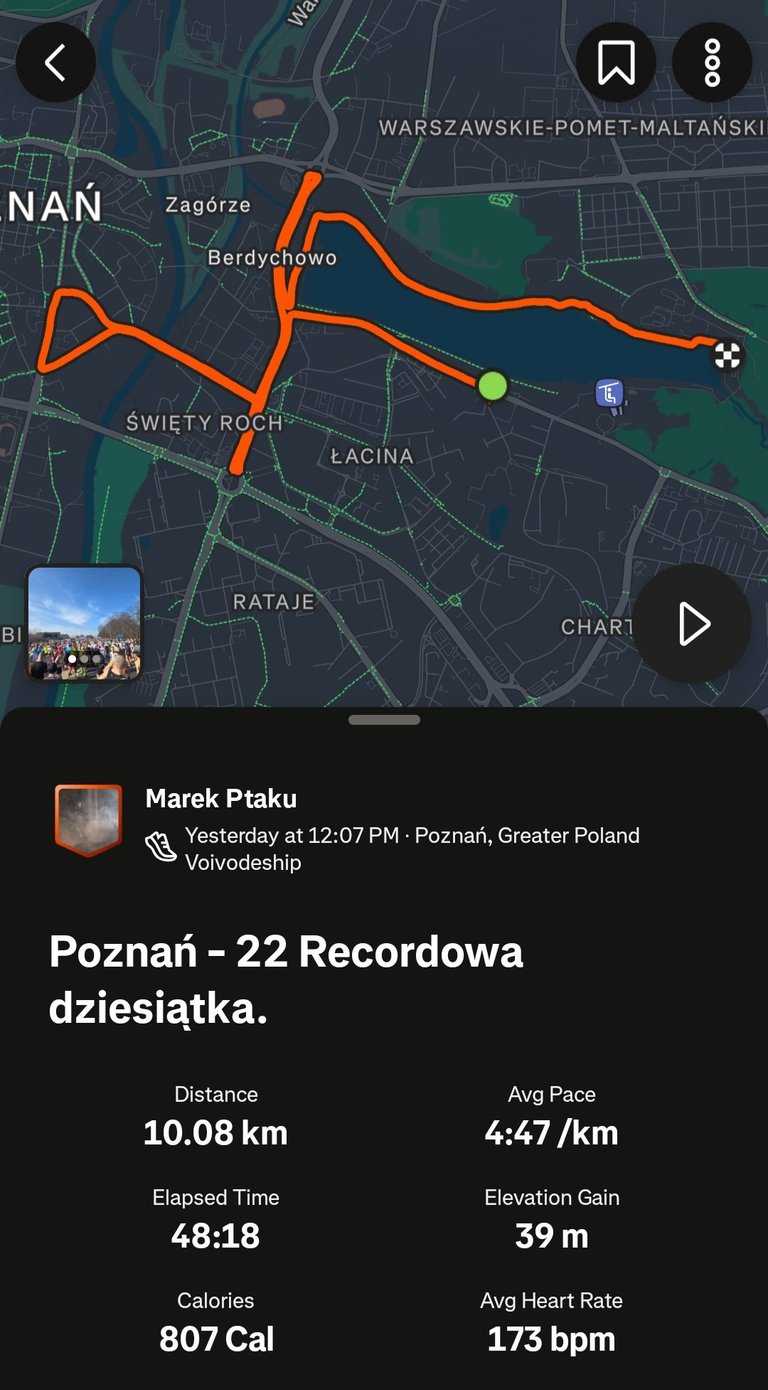 My first race of the year is done. I opened the 2026 season with a 10 km race in Poznań.