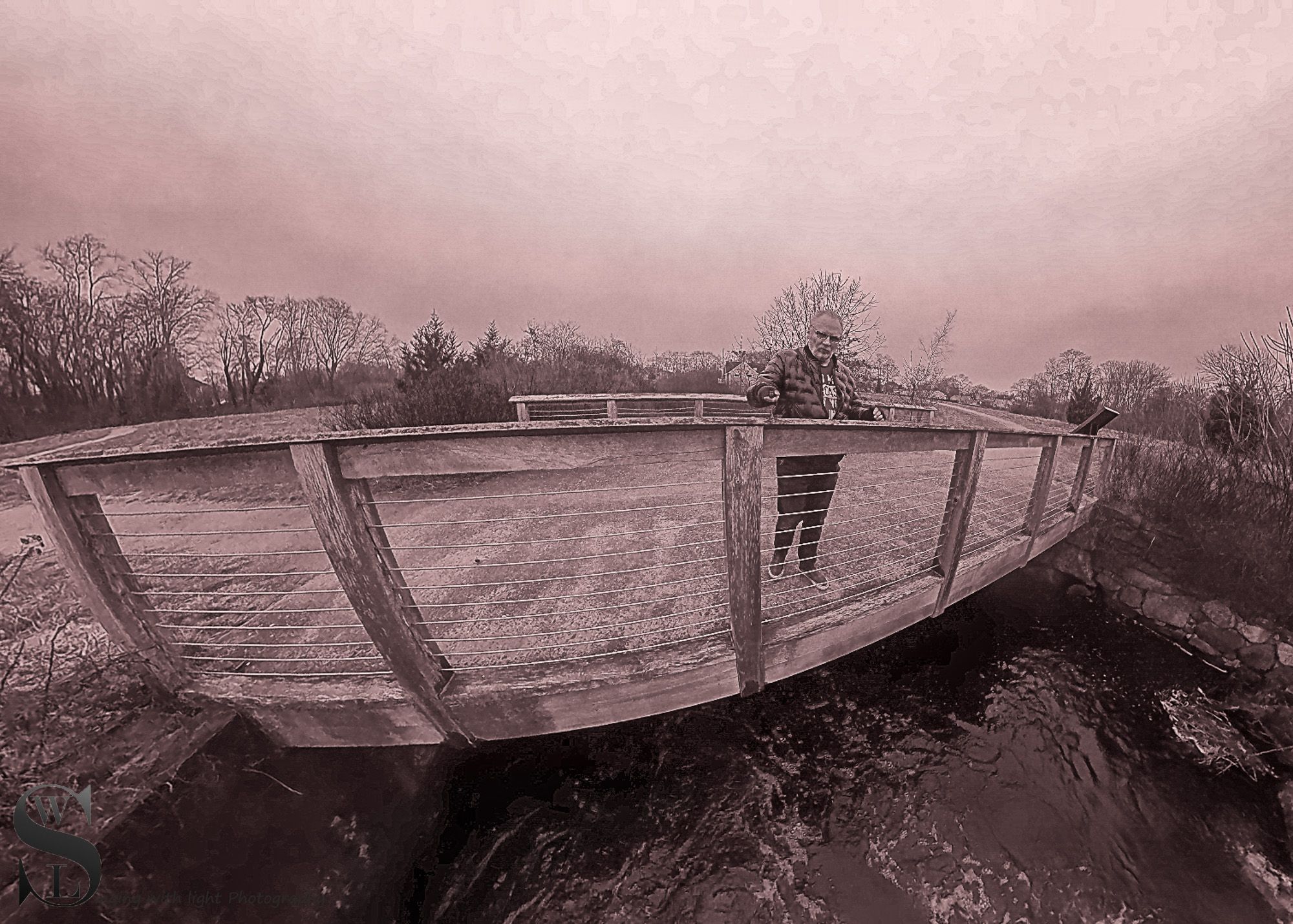 Me on a small bridge in the Acushnet Sawmill park A place I used to visit often as it is near our daughter in Laws hair salon, and I would swing by there while my wife was getting her hair done, but their lease was not extended and the Daughter in Law has given up hair dressing for the moment working full time in another job so I haven't been there for a while