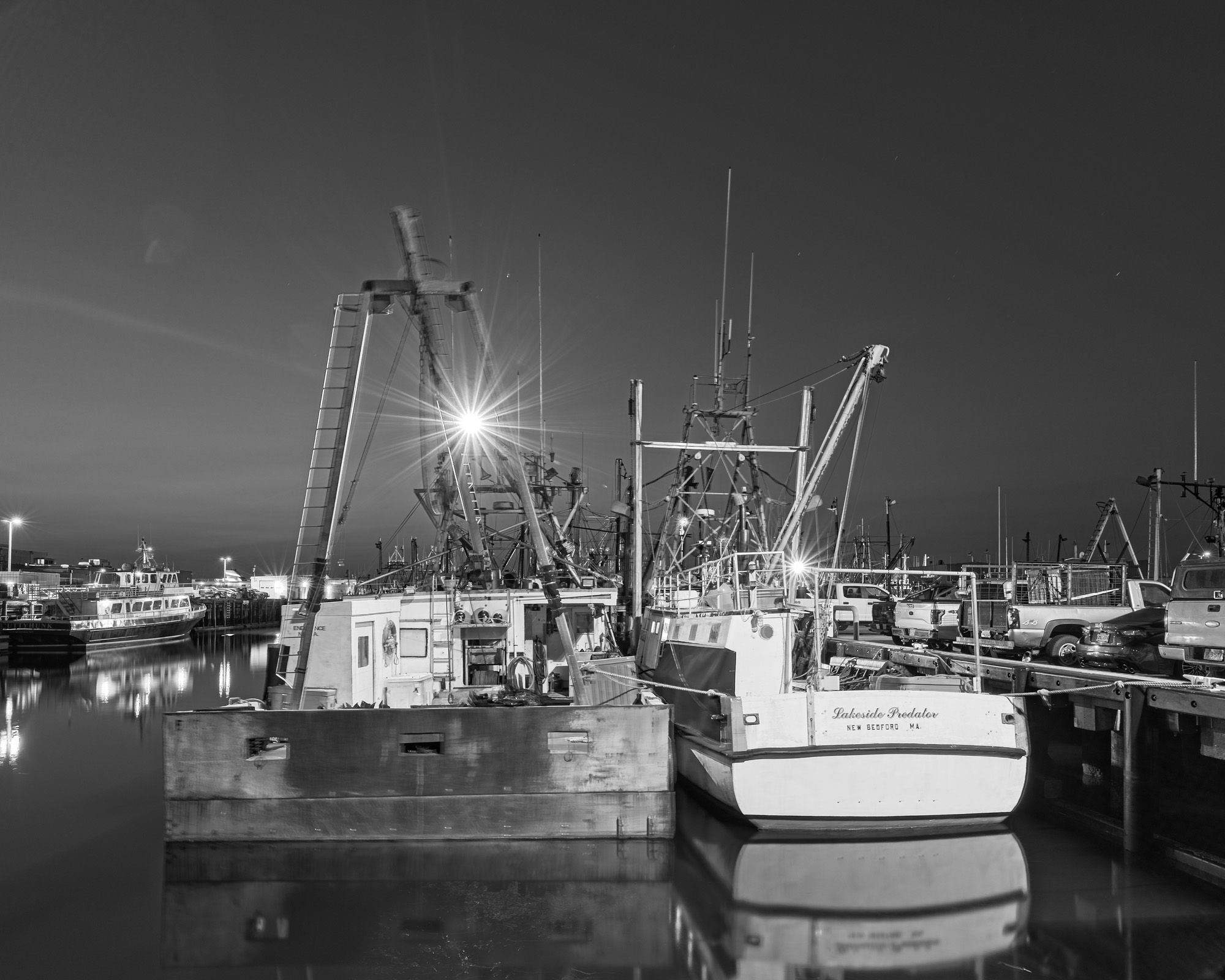 This next one is at the Port of New Bedford love the star effect I got with the lights on these boats