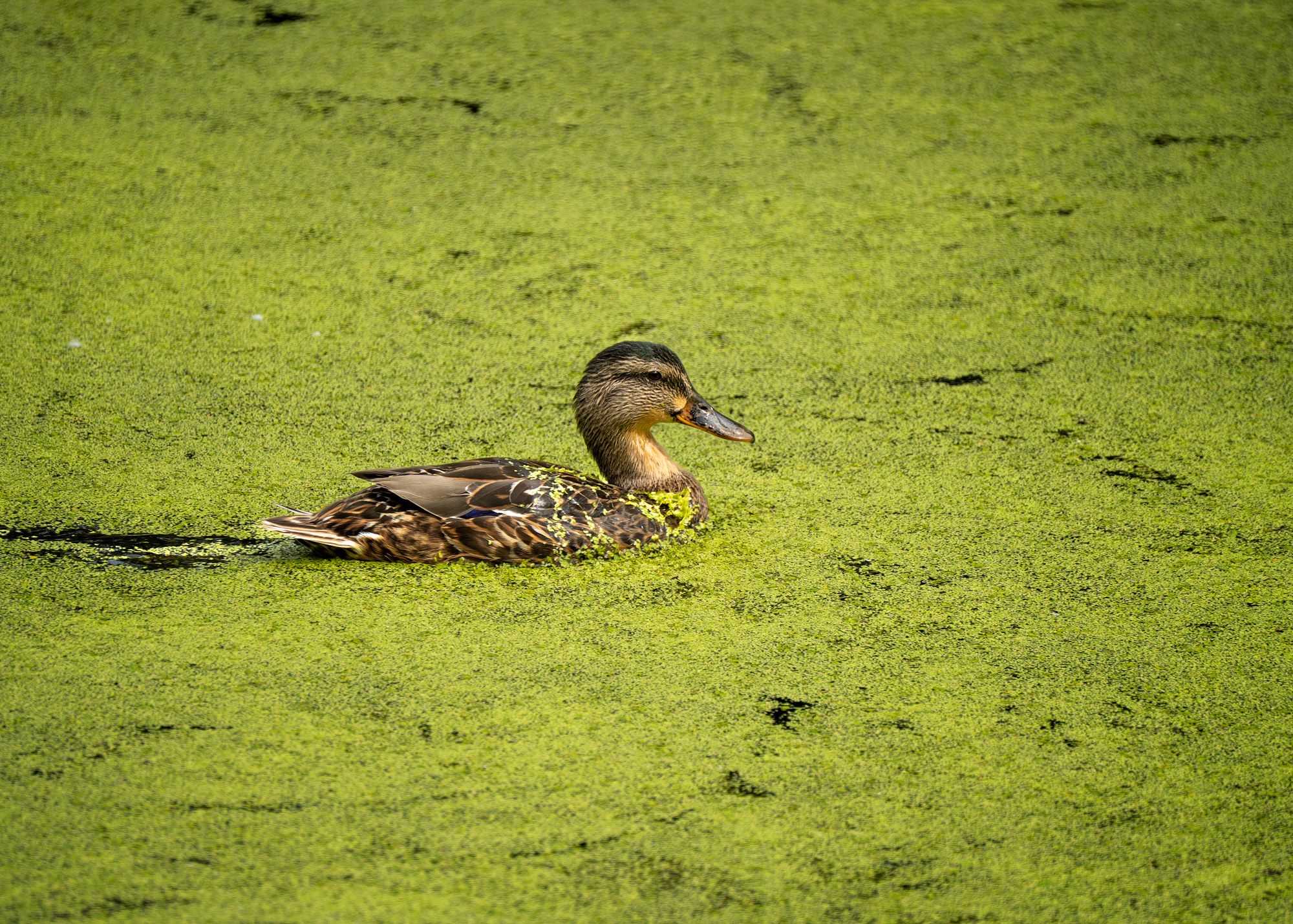 part of the pond was covered with this green stuff not that it seemed to bother the ducks at all