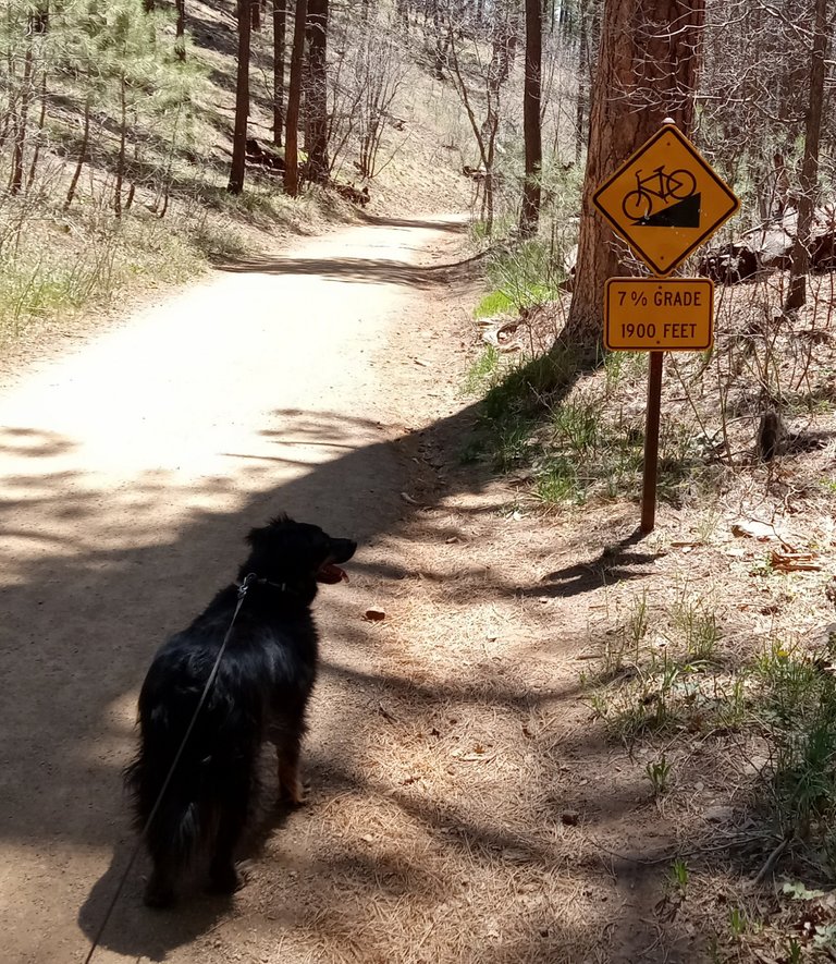 The hike up the mesa was a bit strenuous with the altitude double our normal altitude at home but it wasn't that difficult for us. A few other people were also walking and Lulu was happy to say hello as we hit our turn around spot.