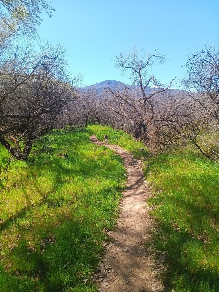 We had an easy hike along the lower Verde River near the Tuzigoot ruins along the empty paths along the river banks. The river was flowing nicely and the cottonwood trees were full of noisy birds. The soft river silt soil made for easy walking and Lulu loved exploring all of the smells to be found.