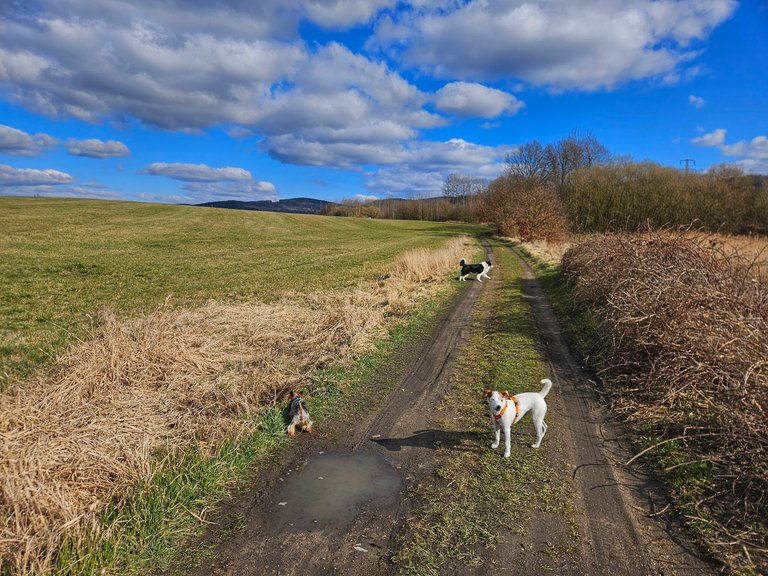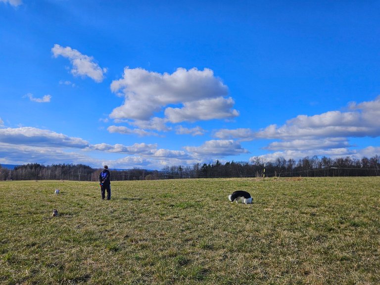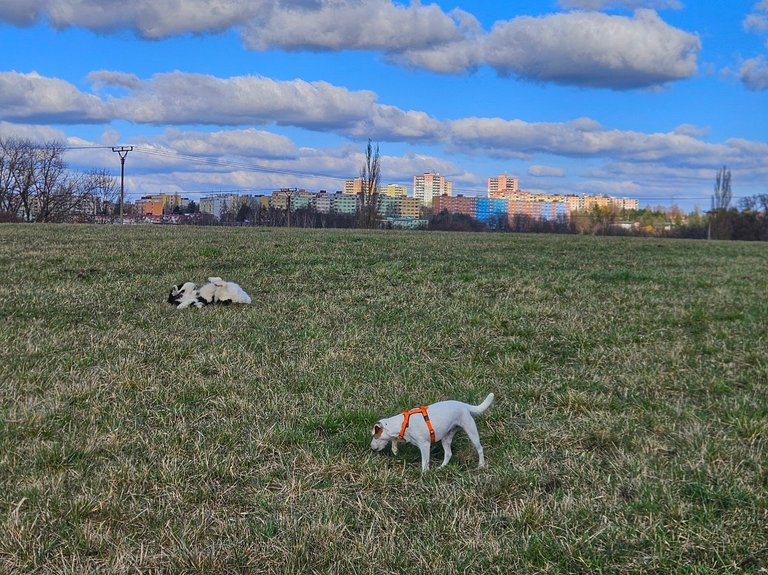 Vzali jsme na pole i synova psa Danteho. Všichni se parádně proběhli a vyvětrali si hlavu. 🐾