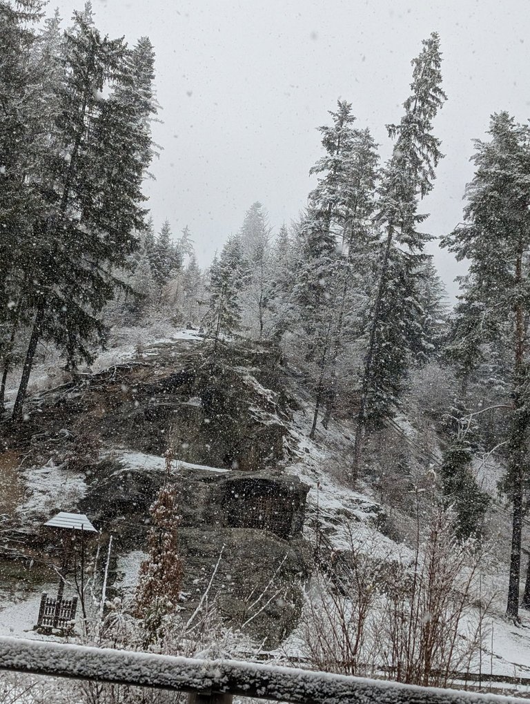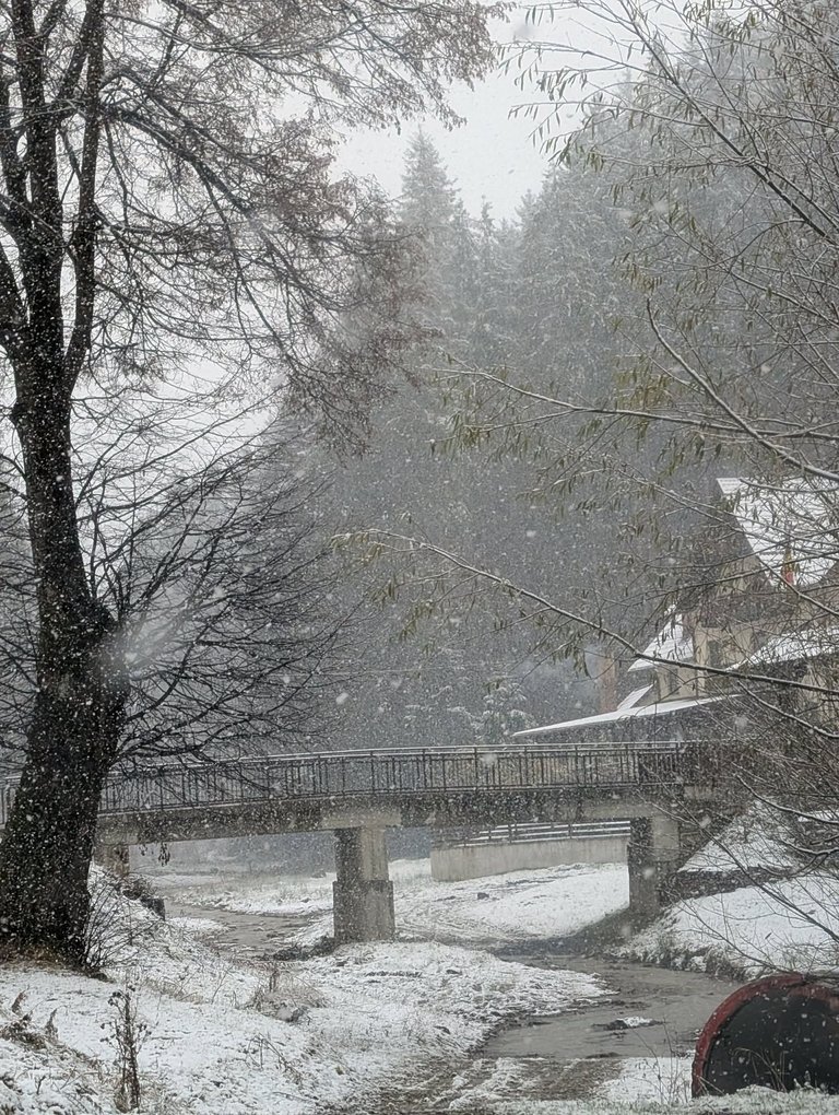 Photos are taken in a village with a population of about 4000 people, lots of shops, it's not remote at all to be cut off from civ in case of heavy snow, it's just situated at higher altitude in the mountains so the weather behaves differently.