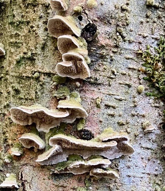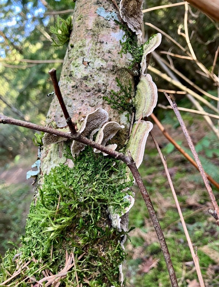 That is a granddaddy specimen of Turkey Tail. It has medicinal purposes, but I don't know how to harvest and process. It grows prolifically around here.