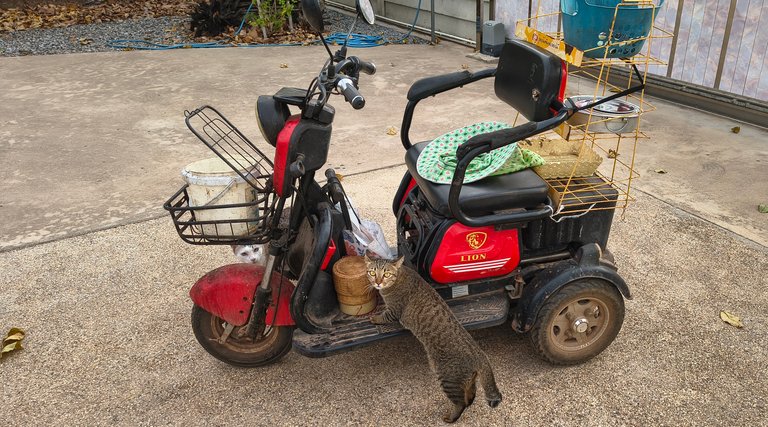 (Yesterday, the owner's mother came to visit to pick up some fruit from the garden. The two cats found her vehicle very interesting. Did you spot the second cat in the photo?)